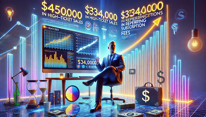 Would it surprise you to learn that I earned over $450,000 in high-ticket sales and an additional $334,000 in recurring subscription fees using the strategies revealed in the AI Wealth Accelerator program?