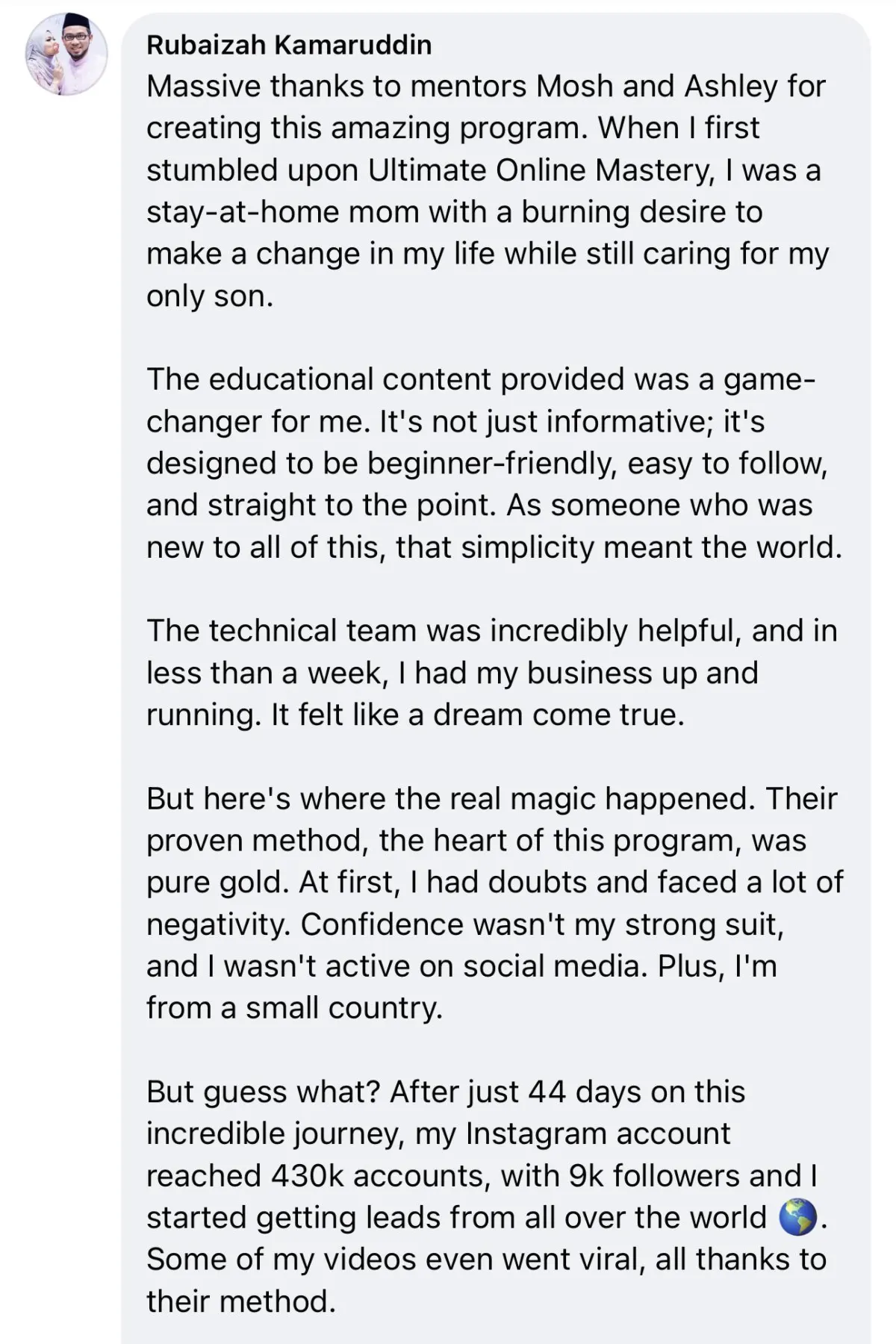 Here’s a post she shared in our private FB Community (which you will have access to once you join the program):